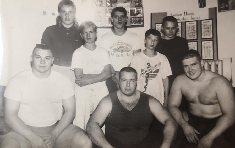 Dobeles svarcēlāju komanda. No labās puses pirmajā rindā Raivo Čaps, Guntars Kusiņš, Viktors Šerbatihs. Otrajā rindā no kreisās Rolands Fersters, Agnis Čaps, Edgars Čaps, Juris Zāģeris un Oļegs Steņņikovs
