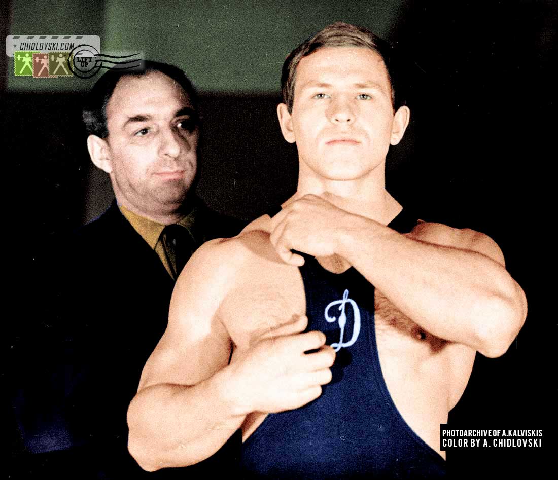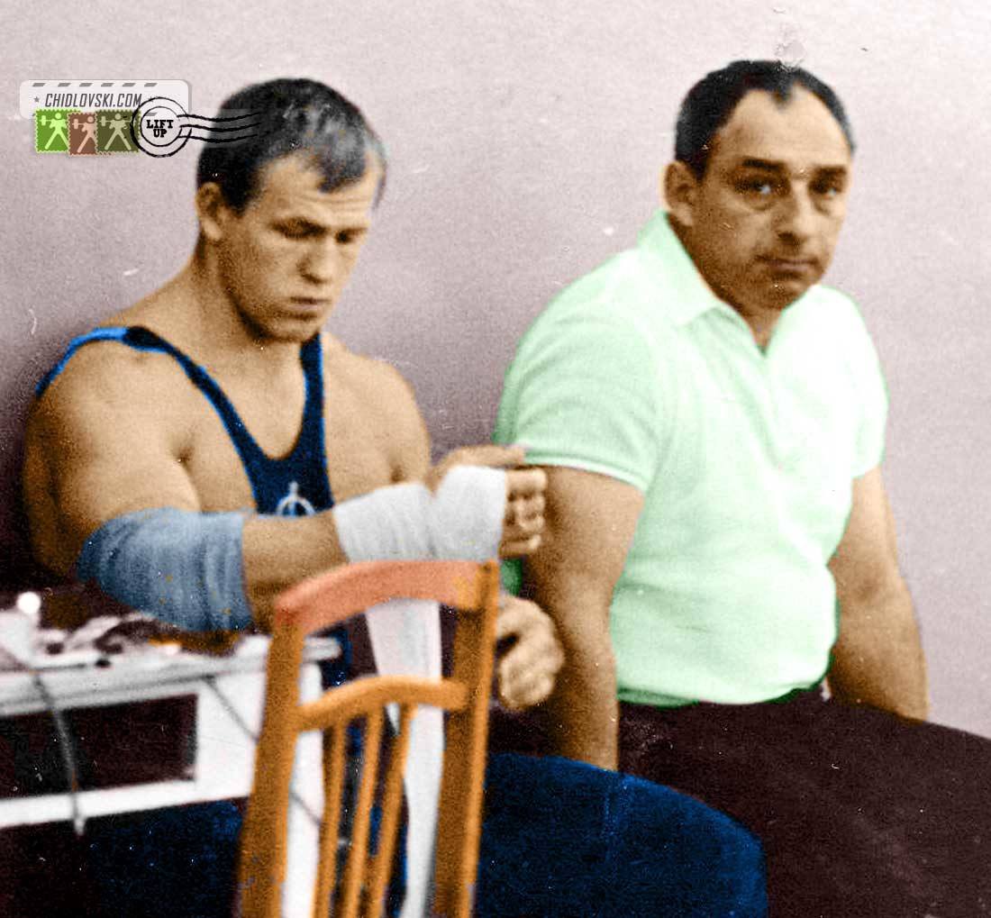 Чемпионат СССР по тяжёлой атлетике,22-26 апреля,1970 года,г.Вильнюс,манеж ,,Динамо,,,, весовая категория до 90 кг,1-место Василий Колотов (РСФСР),532,5(175+157,5+200), за спиной его тренер Александр Чужин,2-место Сергей Полторацкий(Латвия), 507,5(177,5+145+185), 3-место Виллис Перкос (Латвия), 492,5(160+147,5+185) за спиной тренер Михаил Фрайфельд !!!!!