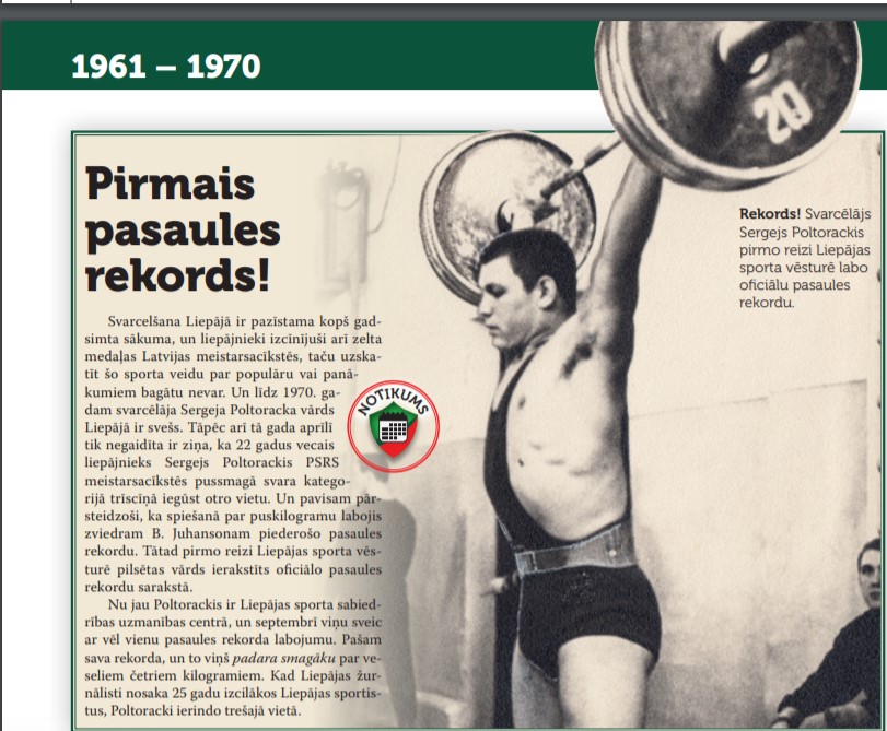 Liepājnieks Sergejs Poltarackis PSRS čempionātā 1971 gadā trīscīņā labo Pasaules rekordu